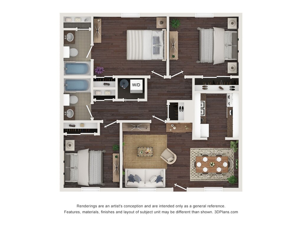 3 Beds, 2 Baths, 961 sq ftModel Gallery