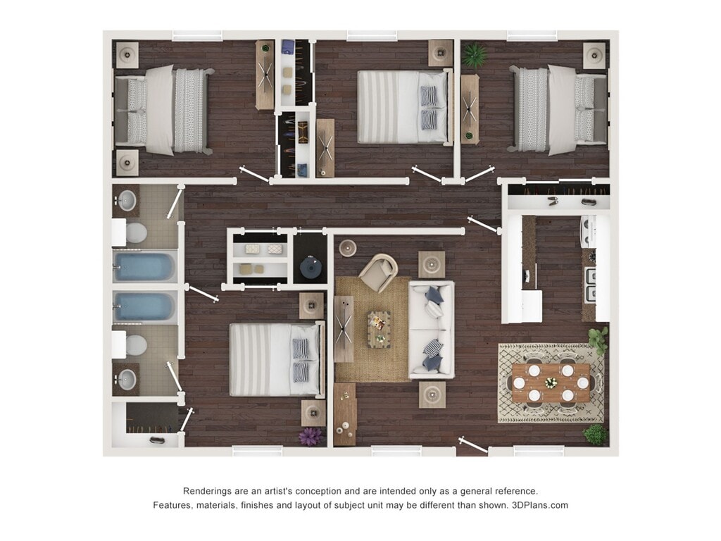 4 Bedroom Unit - Floorplan 1 Apartment Unit: 3268Apartment Model: 4 Bedroom Unit$1,0504 Bedroom, 2 Bath, 1116 sq ftAvailable February 27, 2026