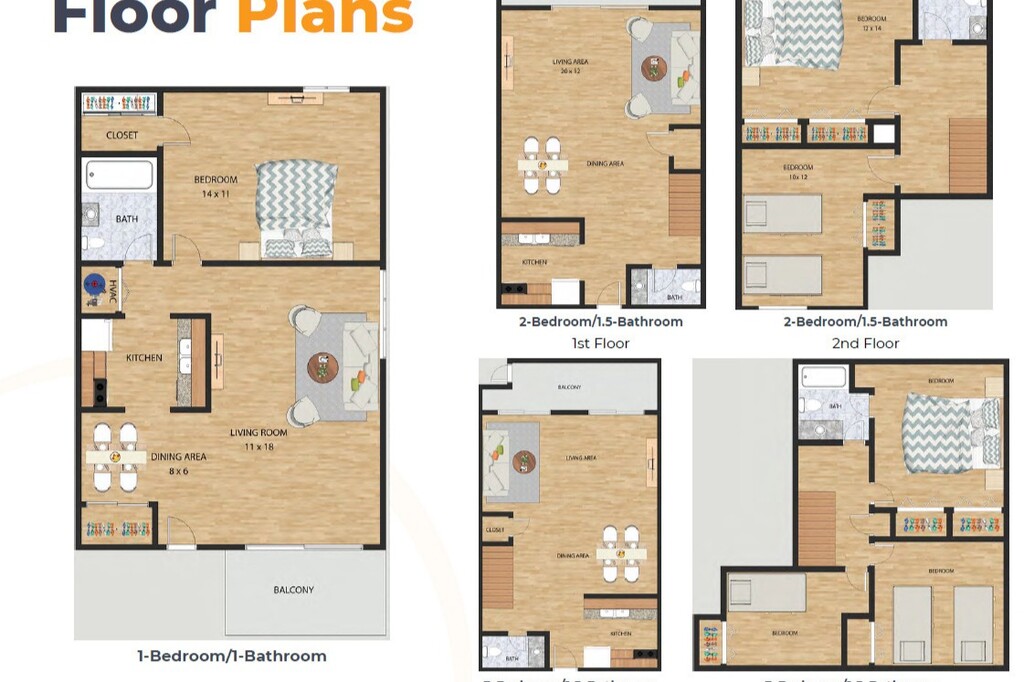 2 Beds, 1.5 Baths, 1075 sq ftModel Gallery