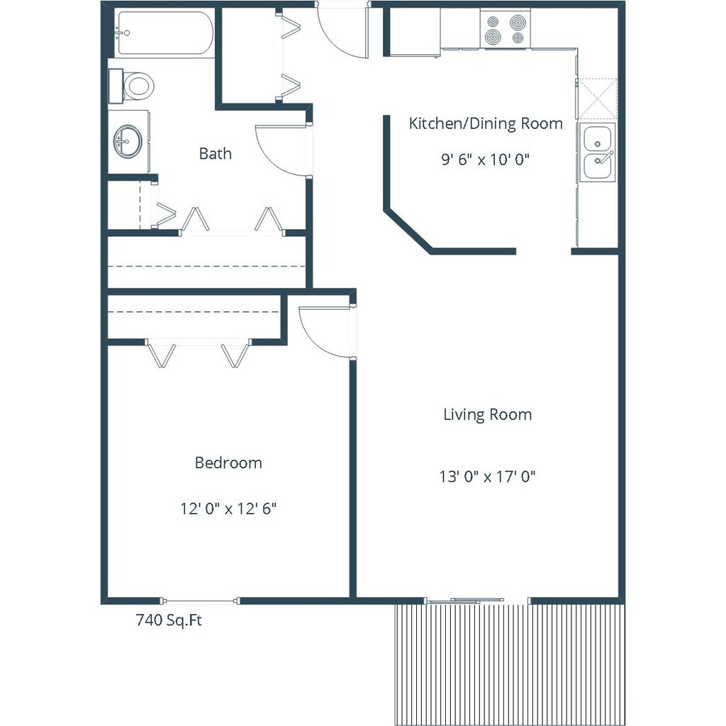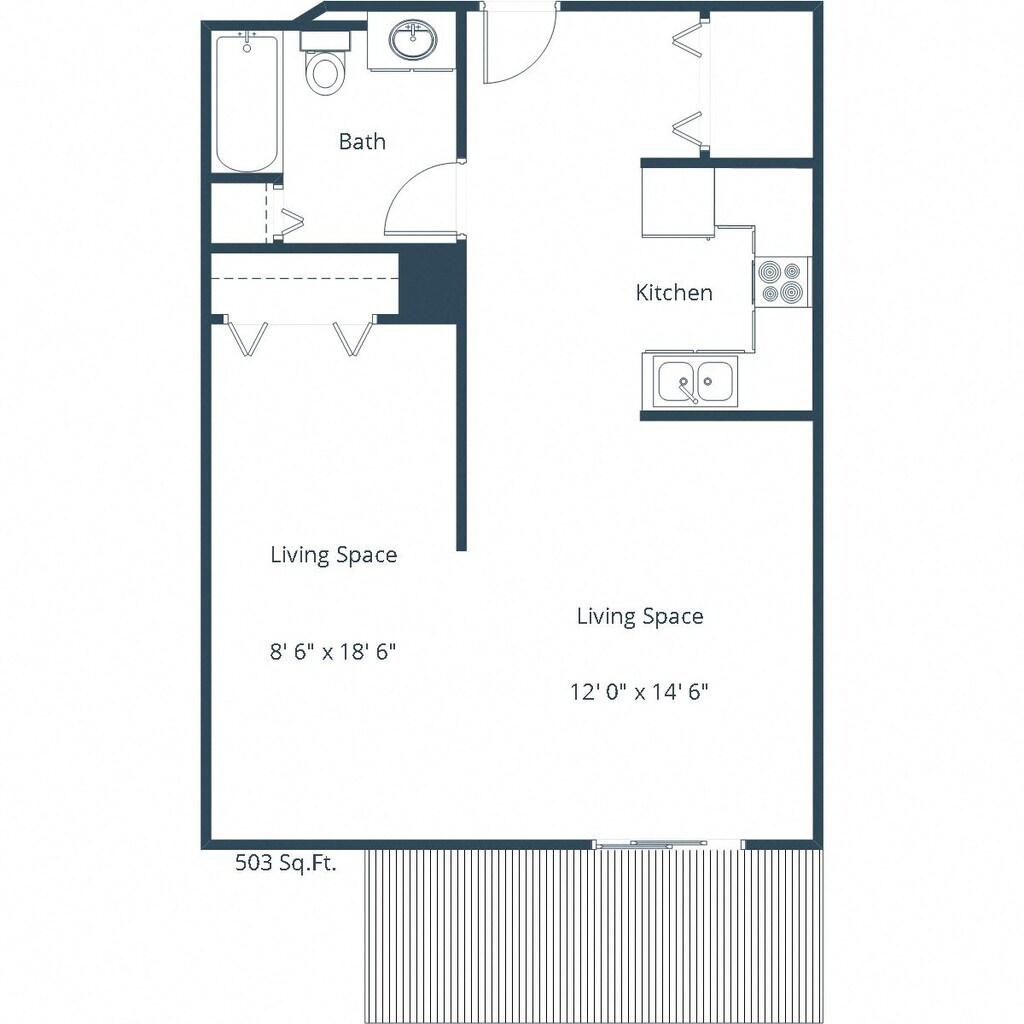 Efficiency 01A - Floorplan 1 Apartment Unit: 119Apartment Model: Efficiency 01AStudio, 1 Bath, 503 sq ftAvailable Now1 Bedroom