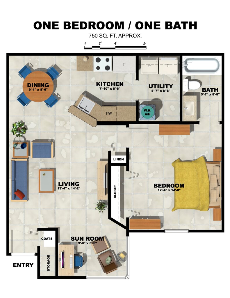 1 Bed, 1 Bath, 750 sq ftModel Gallery
