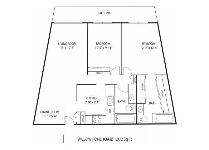 Studio to 3 Bedroom Apartments at Willow Pond currently range from $1,189 to $2,024