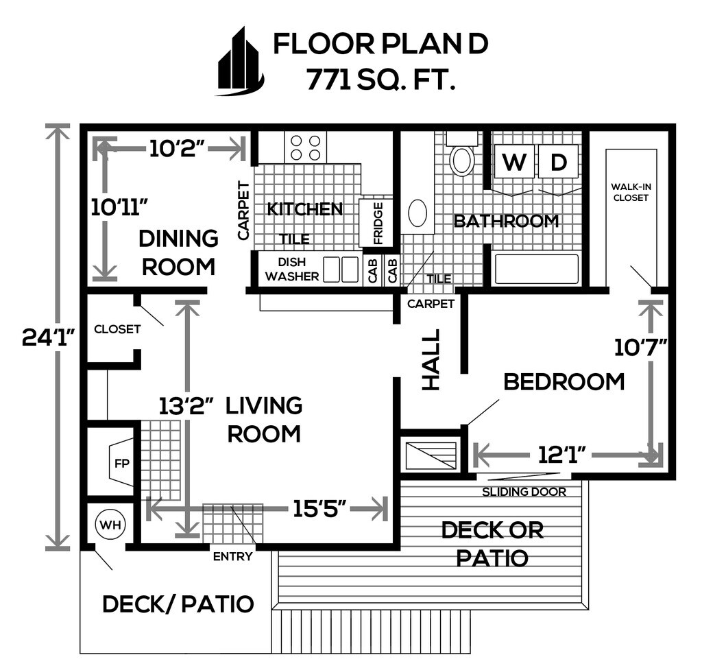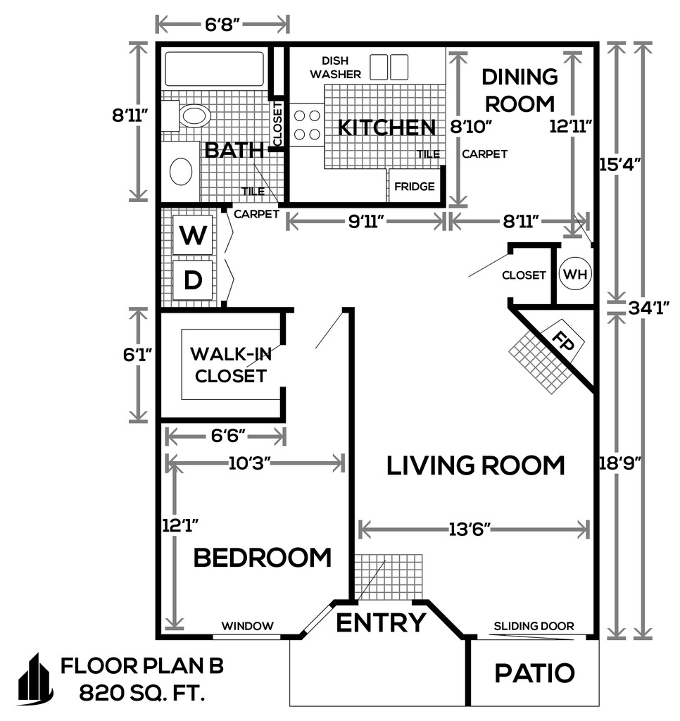 1 Bedroom - Unit B - Floorplan 9 1 Bedroom - Unit C