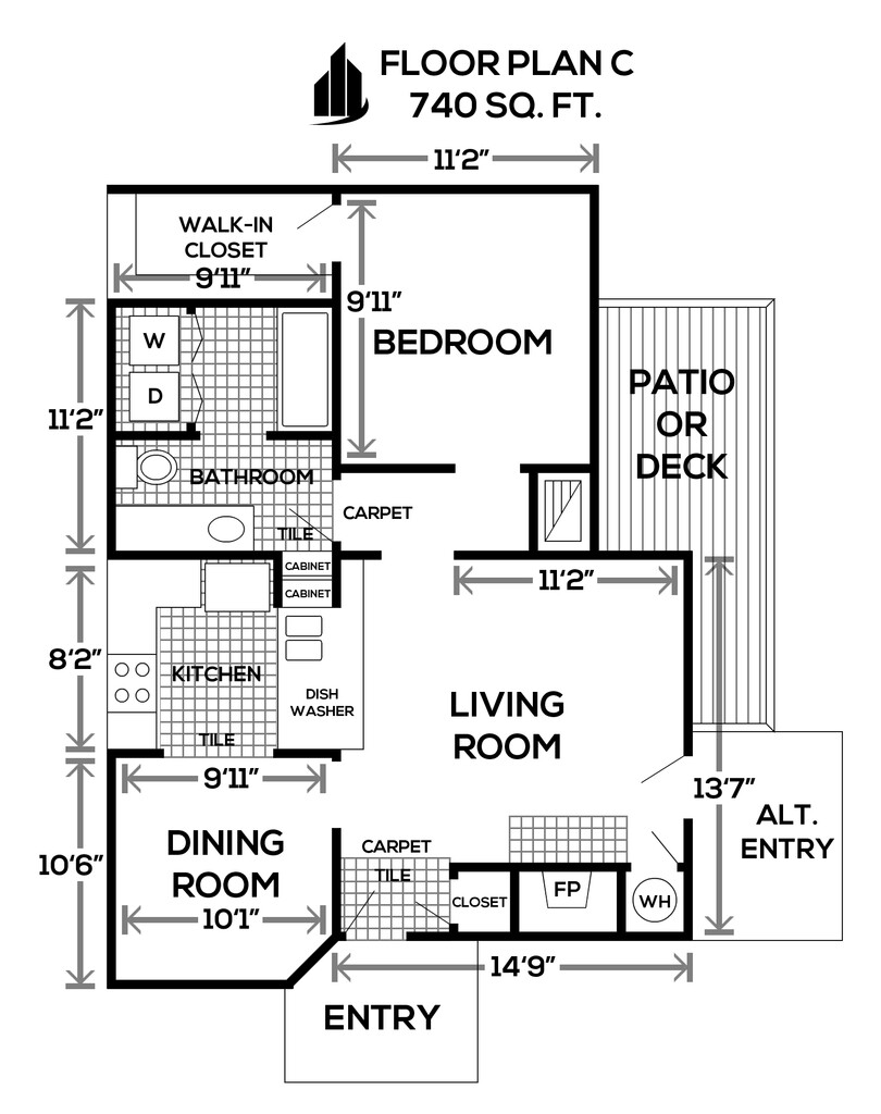 1 Bedroom - Unit C - Floorplan 1 2 Bedrooms