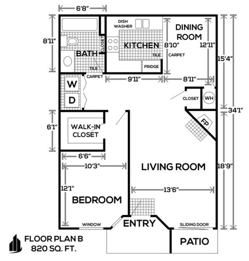 Apartment Model: 1 Bedroom - Unit C$1,6501 Bedroom, 1 Bath, 820 sq ftUnavailable![]()