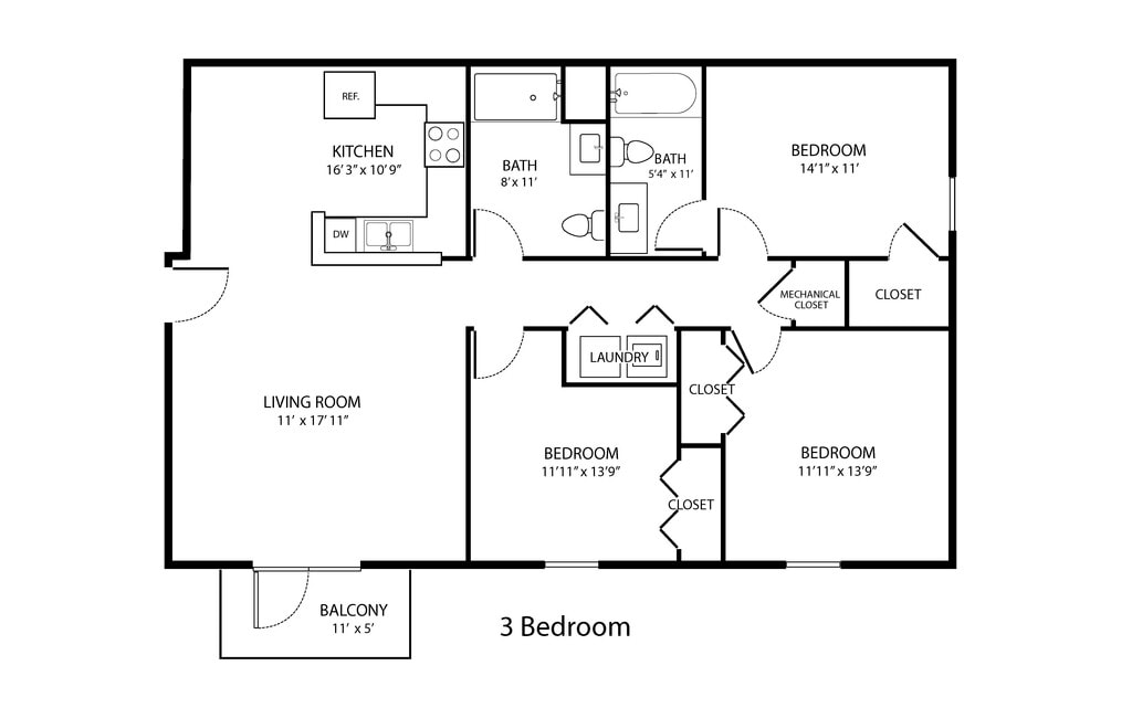 Apartment Model: Three BedroomFrom $1,0293 Bedroom, 2 Bath, 1142 sq ftUnavailable![]()