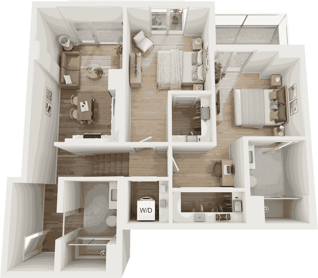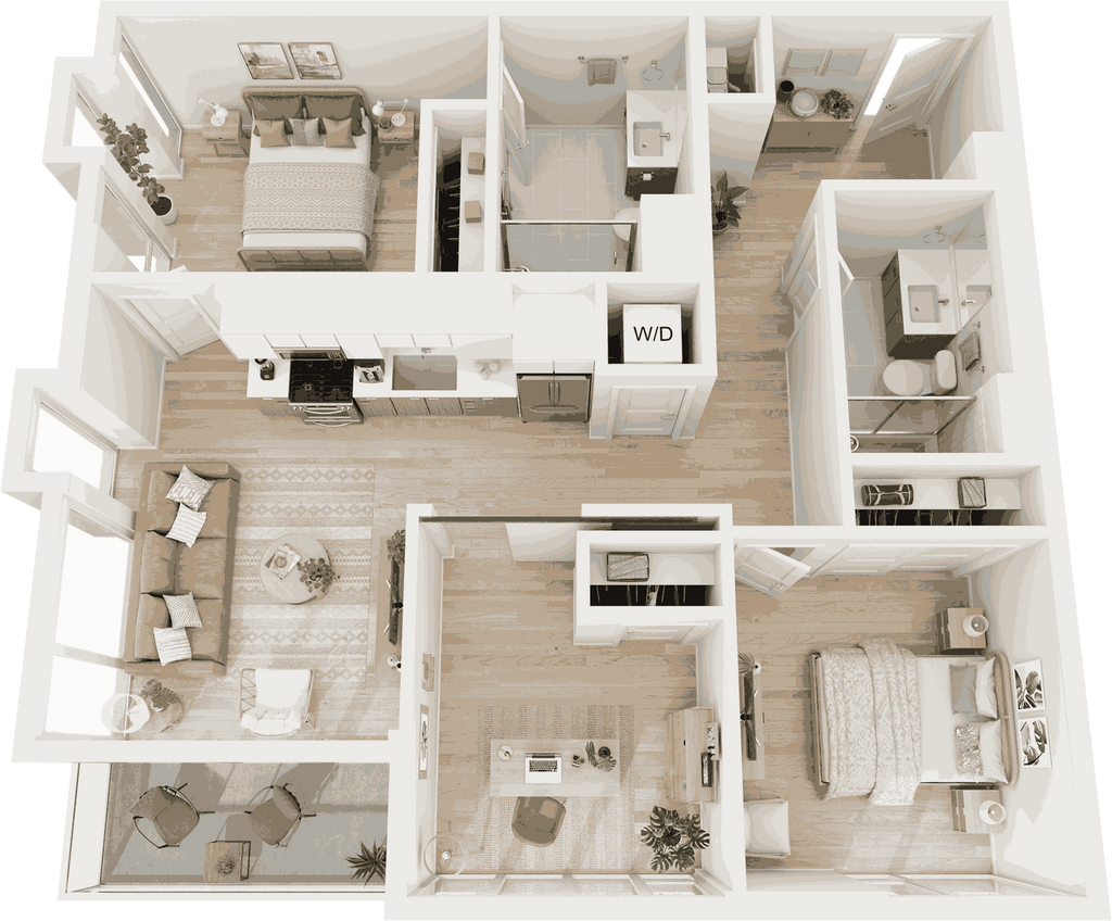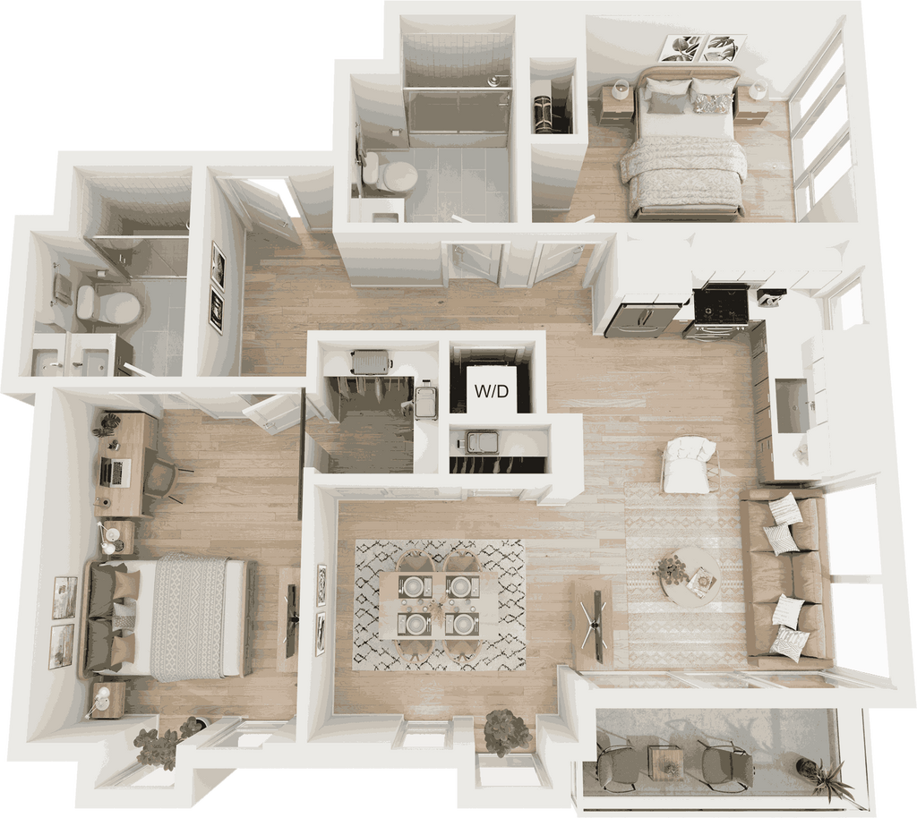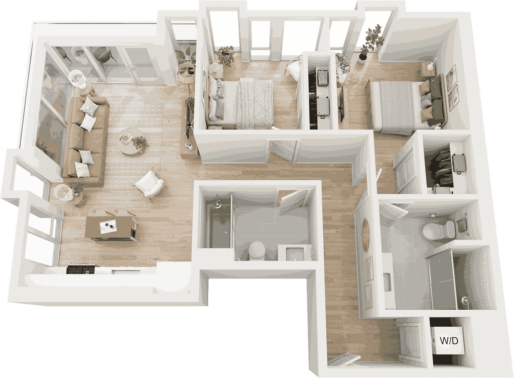 Apartment Model: 2 Bed/2 Bath-B1$6,5992 Bedroom, 2 Bath, 973 sq ftAvailable Now![]()