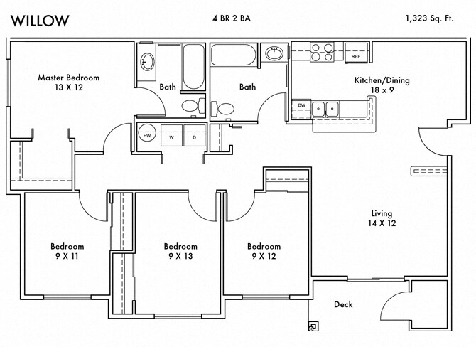 2 Bedroom to 4 Bedroom Apartments at Willow Tree Grove currently range from $1,723 to $2,449
