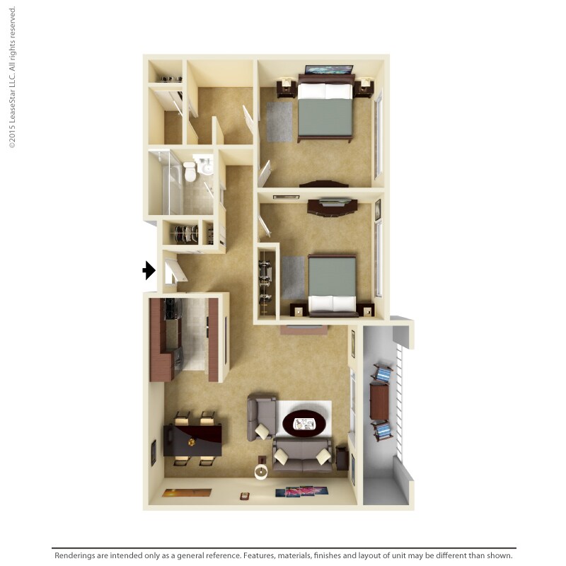2 Beds, 2 Baths, 1050 sq ftTotal Monthly PriceAvailable NowModel Gallery
