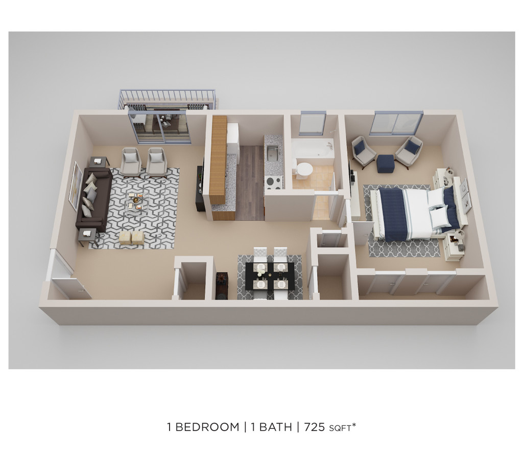 1 Bed, 1 Bath, 725 sq ftAvailable January 9, 2026Model Gallery