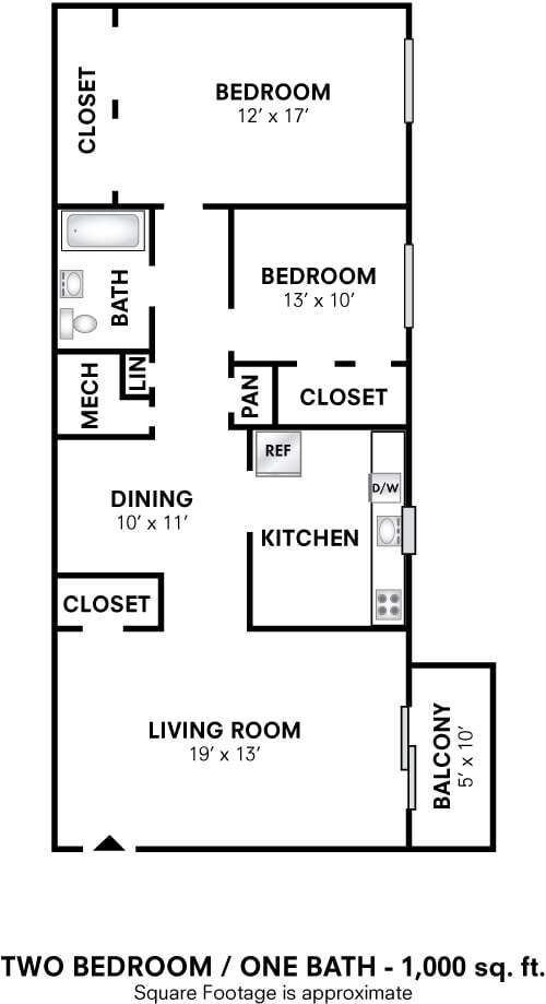 Two Bedroom - 1,000 Sqft - Floorplan 1 ![]()