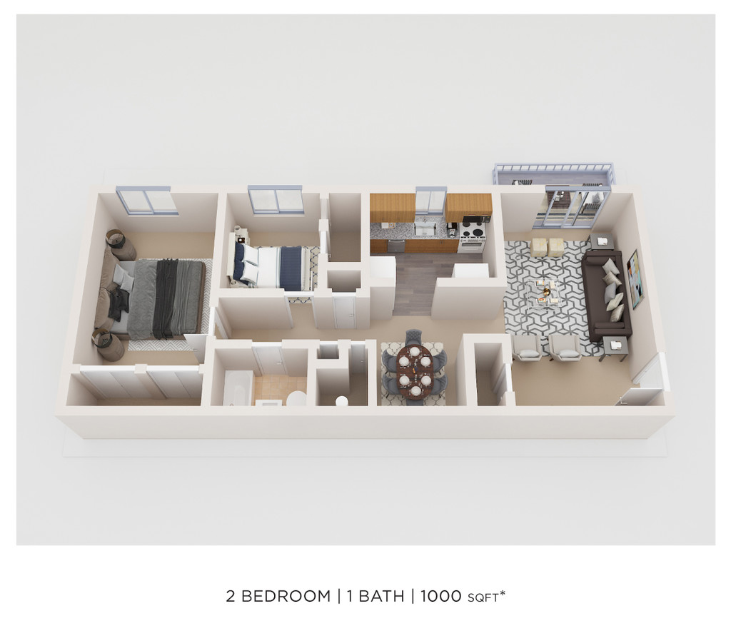2 Beds, 1 Bath, 1000 sq ftAvailable Dec 7Model Gallery