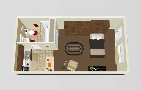 Studio, 1 Bath, 288 sq ftModel Gallery
