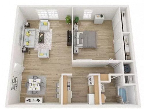 1 Bed, 1 Bath, 476 sq ftModel Gallery