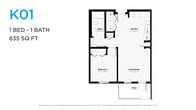 1 Bed, 1 Bath, 635-641 sq ftModel Gallery