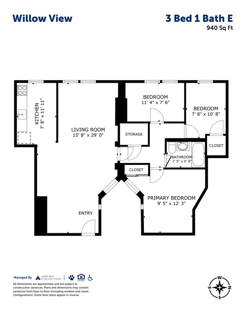 3 Bed 1 Bath E - Floorplan