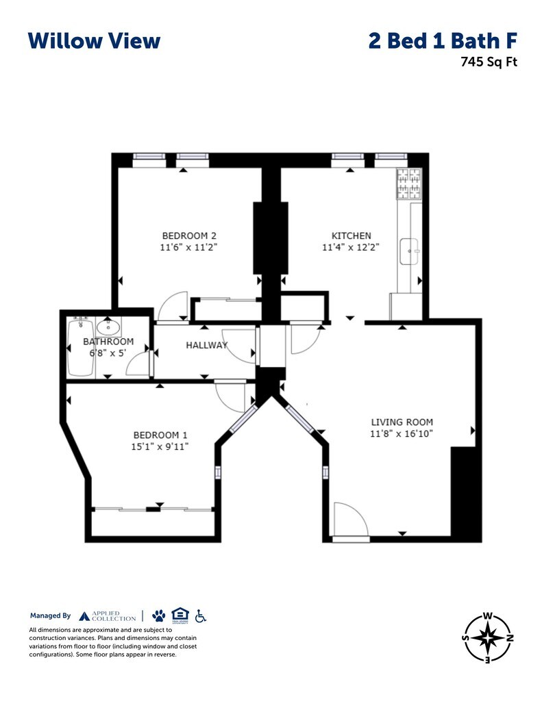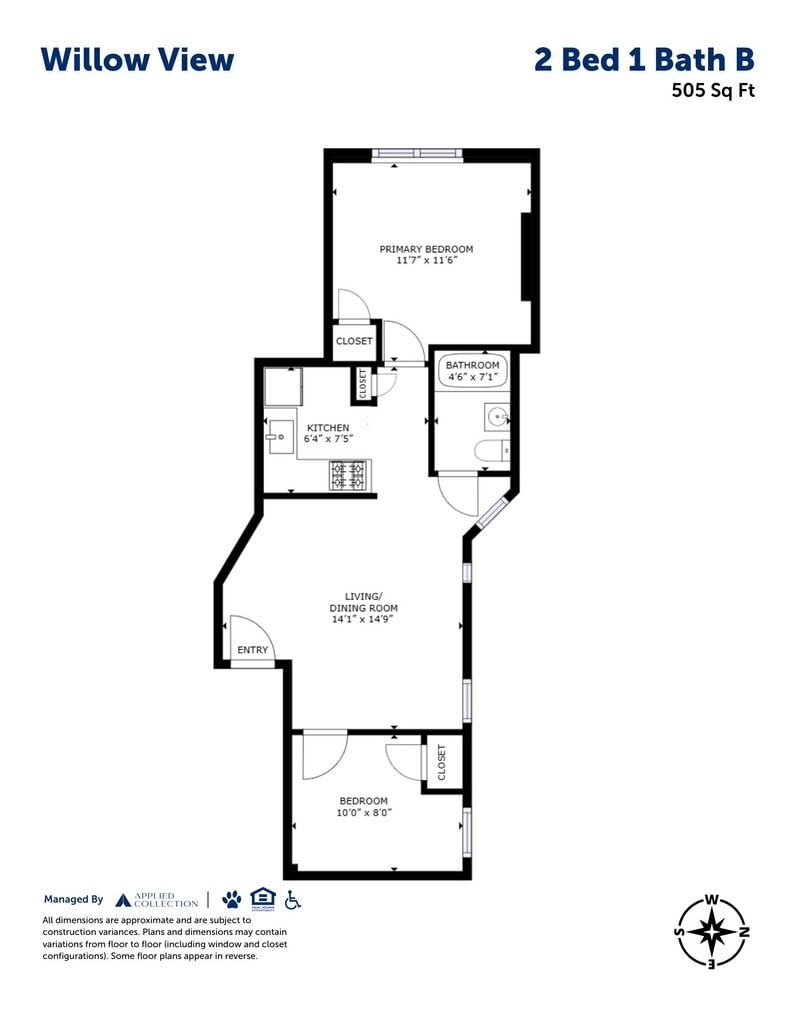 2 Bed 1 Bath E - Floorplan 2 Bed 1 Bath F
