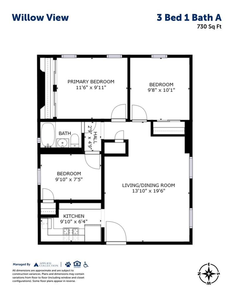 3 Beds, 1 Bath, 730 sq ftAvailable NowModel Gallery