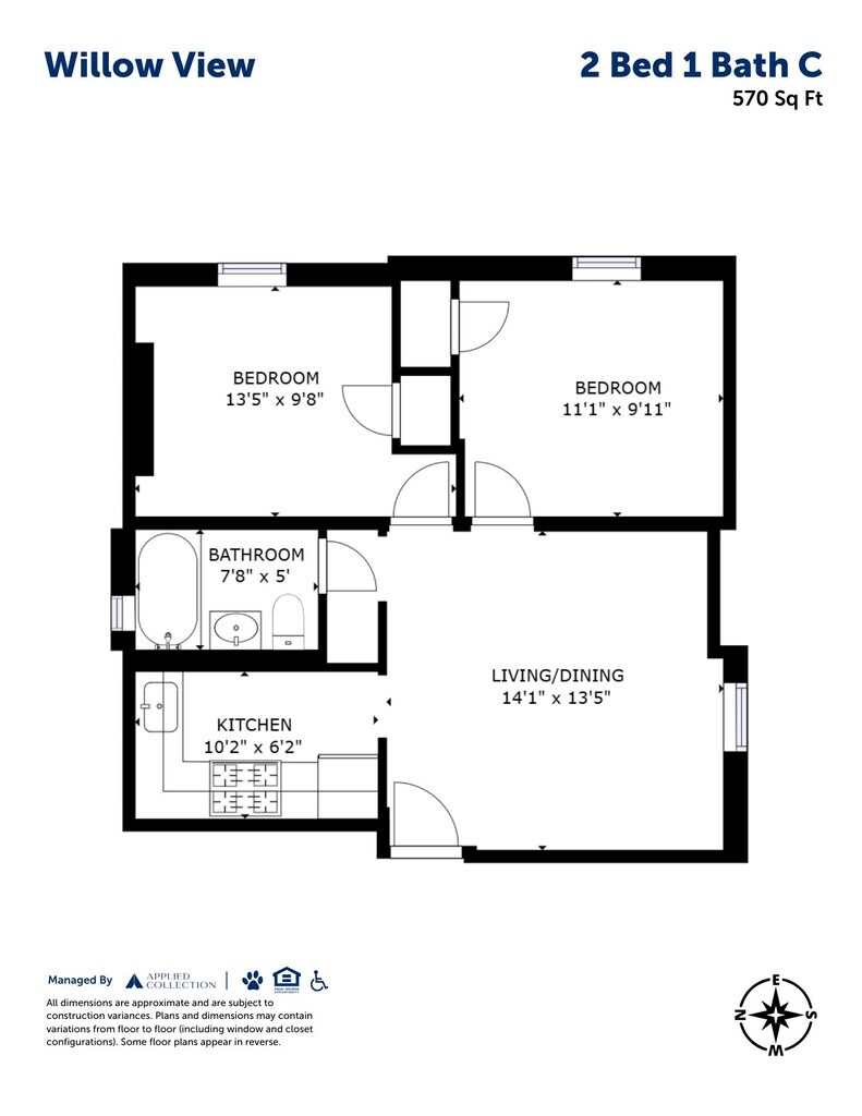 2 Beds, 1 Bath, 570 sq ftModel Gallery
