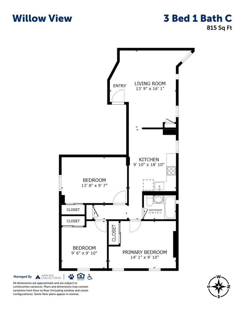 Apartment Model: 3 Bed 1 Bath CCall For Rates3 Bedroom, 1 Bath, 815 sq ftUnavailable![]()