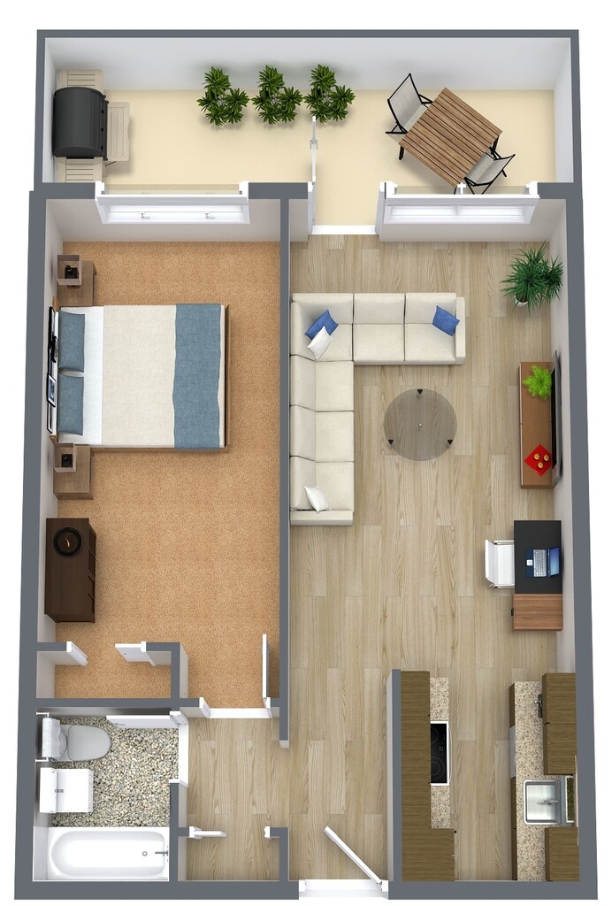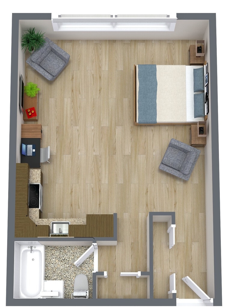 Studio, 1 Bath, 600 sq ftModel Gallery