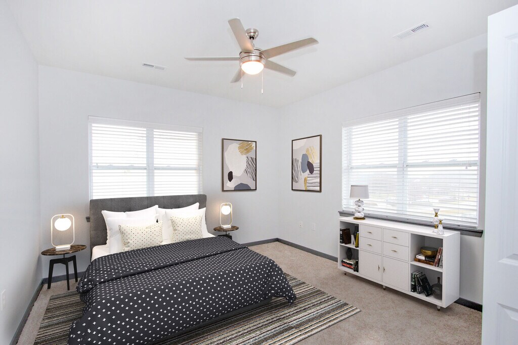 - Sleek ceiling fans in living areas and bedrooms
