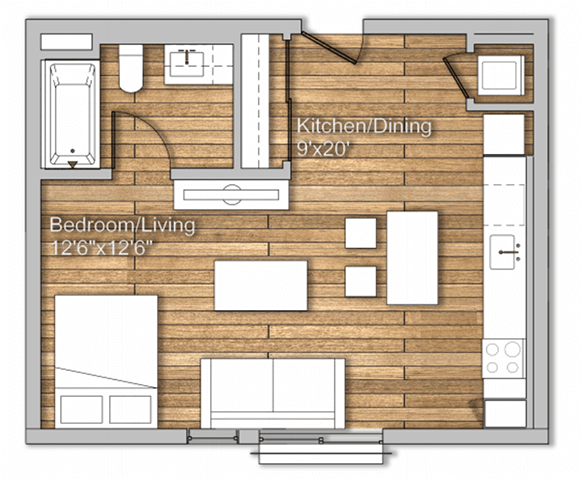 Studio, 1 Bath, 500 sq ftAvailable May 11Model Gallery