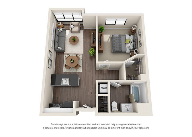 Studio, 1 Bath, 496 sq ftAvailable NowModel Gallery