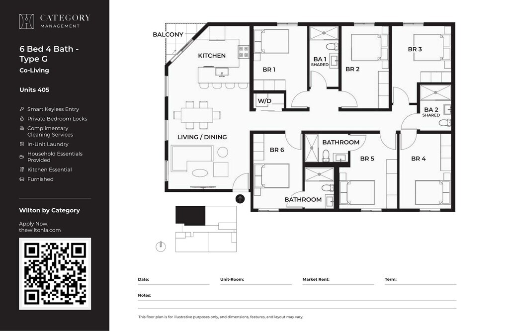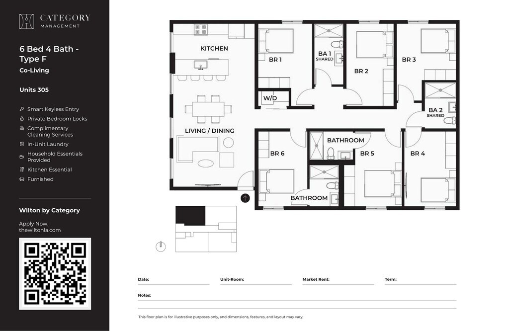 Wilton by Category: Fully Furnished Co-Living - Private Bedrooms Available Welcome to Wilton by Category, a brand-new (2024) co-living community offering fully furnished apartments designed for modern comfort and convenience. Enjoy the privacy of your bedroom, with the option of a private or shared bathroom, while sharing stylish common spaces with like-minded housemates. With sleek modernist architecture, stunning outdoor breezeways, and thoughtfully curated interiors, Wilton delivers a living experience unlike any other in LA. What's Included: Private bedroom (choose private or shared bathroom) Fully furnished apartments Fitness center Furnished rooftop deck with 360-degree views, fire pit, and BBQ Rec room lounge with full kitchen Keyless entry & package concierge Onsite parking available (EV Chargers) Located in the heart of Koreatown, Wilton puts you steps away from LA's best dining, nightlife, and cultural experiences. Spend an evening at BreakRoom 86, savor Roy Choi's famous wings at The Line Hotel, or enjoy legendary KBBQ and specialty markets nearby. For exploring the rest of LA, the Wilshire Purple Line subway station is just a short walk away, connecting you to Hollywood, Downtown LA, LACMA, and beyond. Flexible lease terms from 3 to 12 months make finding the perfect fit for your lifestyle easy. Office Hours: Monday to Friday: 9:00 AM - 6:00 PM Weekend appointments are available upon request.