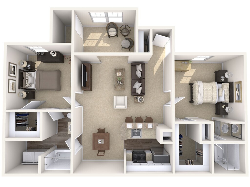 2 Beds, 2 Baths, 1050 sq ftAvailable NowCheapest 2 BedroomThis is the cheapest 2 Bedroom at this PropertyModel Gallery