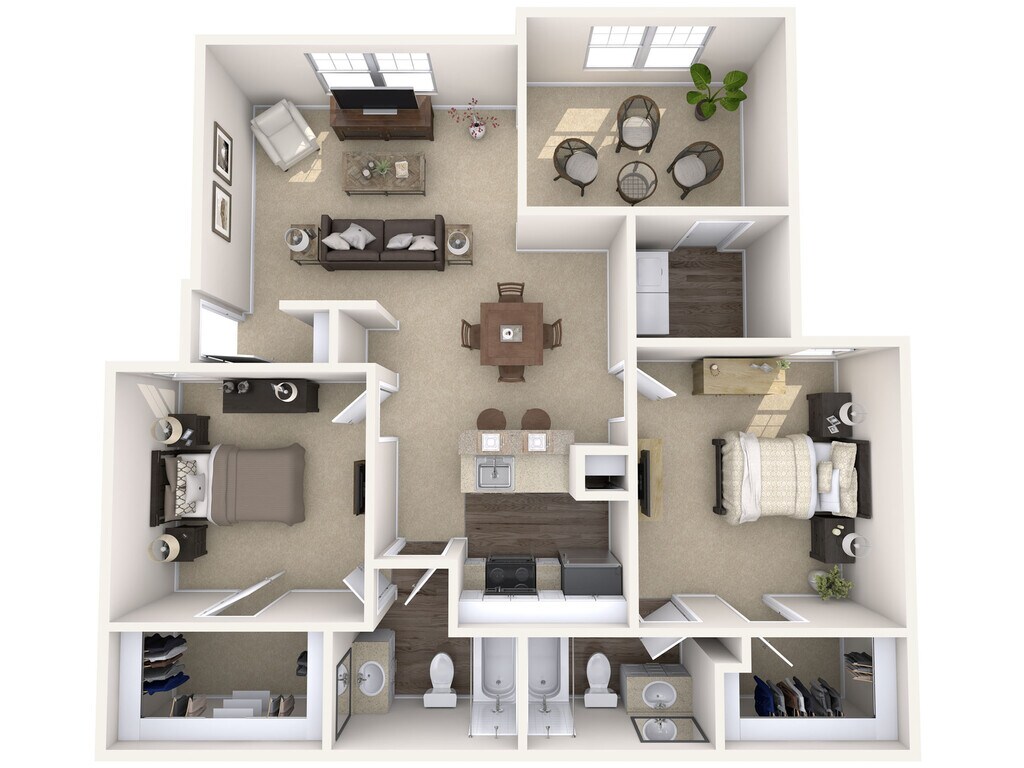 Apartment Model: B3From $1,4322 Bedroom, 2 Bath, 1050 sq ftAvailable Now![]()