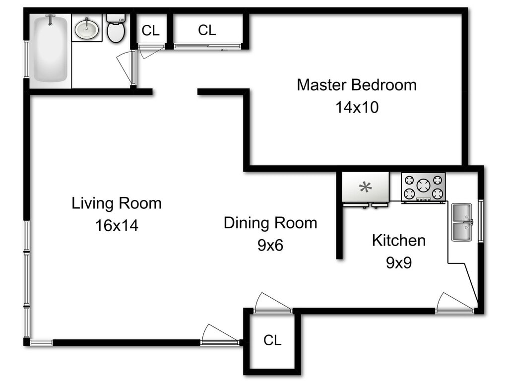 1 Bedroom, 1 Bath - Floorplan 10 1BR/1BA