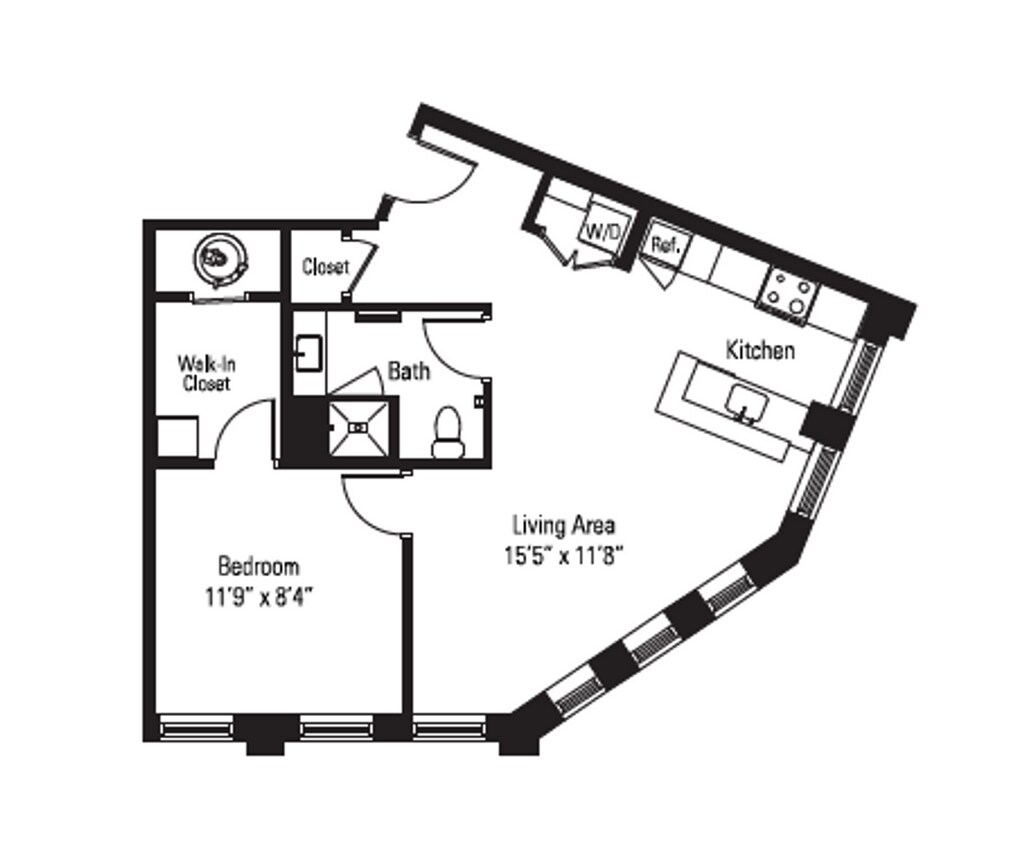 1AA - Image 5 Apartment Unit: 01-345Apartment Model: 1AA$1,9501 Bedroom, 1 Bath, 525 sq ftAvailable Now![]()