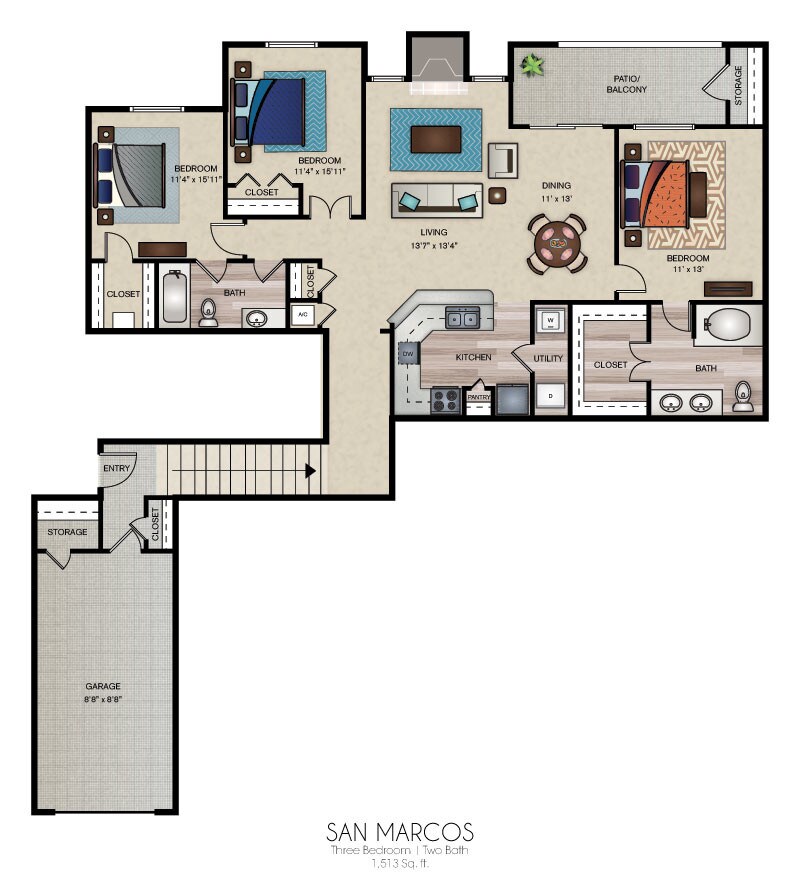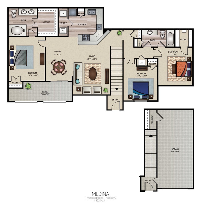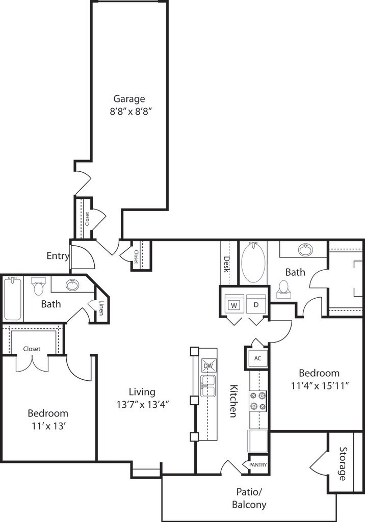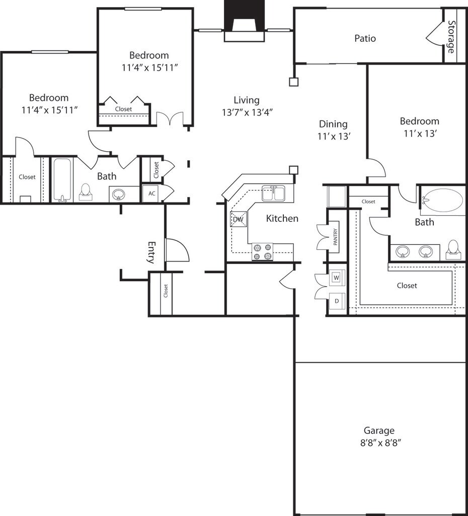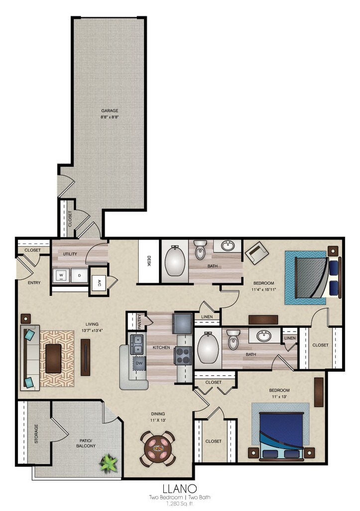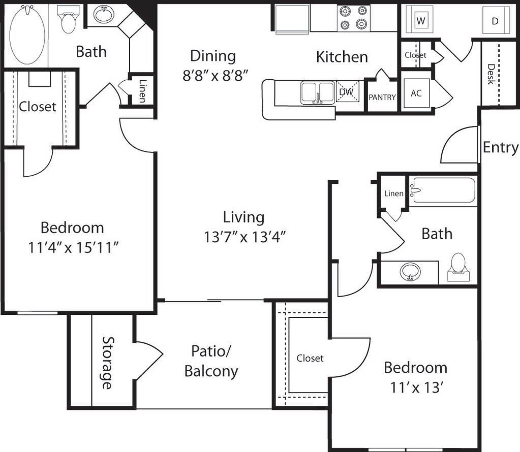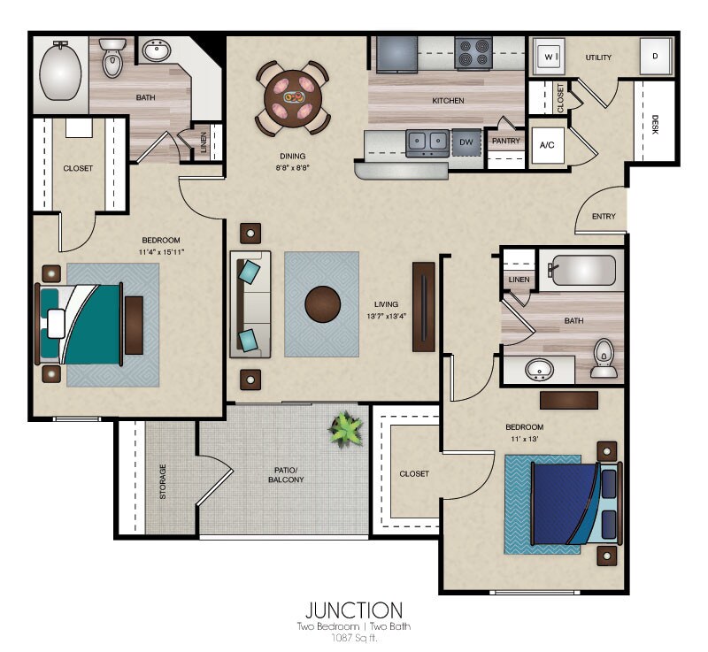 2 Beds, 2 Baths, 1087 sq ftAvailable NowModel Gallery
