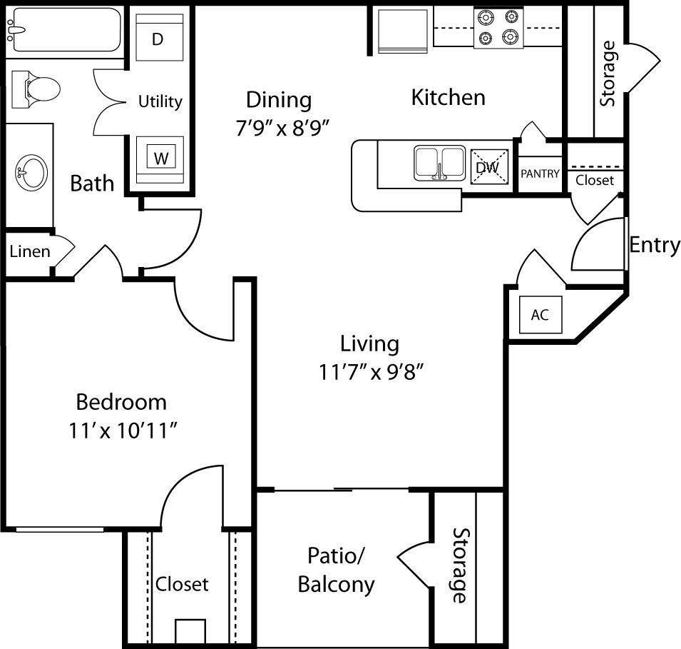 1 Bed, 1 Bath, 797-903 sq ftAvailable NowModel Gallery