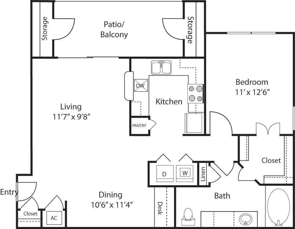 1 Bed, 1 Bath, 679 sq ftAvailable NowModel Gallery