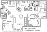 Apartment Model: Two Bedroom Two Bathroom 60%2 Bedroom, 2 Bath, 1032 sq ftAvailable NowTwo Bedroom Two Bathroom 60% - Floorplan 1 3 Bedrooms