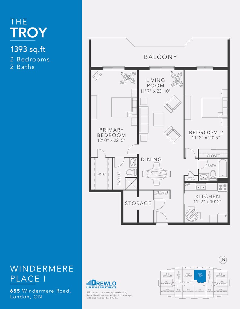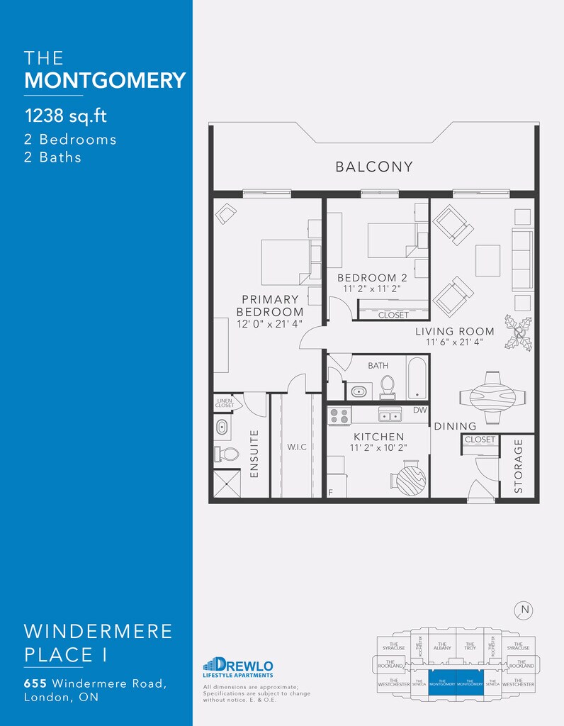 Live at Windermere Place, an Apartment in North London Ontario. Situated in a beautiful park-like setting by the Thames River! Enjoy gorgeous views and a prime location - walking distance to Stoney Creek Meadows, Stoneybrook Recreation Field, North London Athletic Fields, Hastings Park, The Waltzing Weasel Pub and more. Just a short bus or car ride away you'll find Masonville Mall, Sobeys, The Home Depot, Rexall, banks, gas stations and more. This Apartment in North London Ontario is also accessible by bus from Fanshawe College, Western University and various public schools. Inside the rental units you will find eat-in kitchens with dishwashers, walk-in closets, and large balconies. Shared amenities include an indoor saltwater pool, hot tub, sauna, fitness room and social room. Underground parking is available. Our Sparkle laundry facilities have machines that send you text messages you when your load is done & more! PLUS! For each month that you rent with Drewlo Holdings, you will receive $400 - for a maximum of $15,000 - towards the purchase of a brand new home or townhome from the award winning Ironstone Building Company. Learn more about the RENT. SAVE. OWN. program