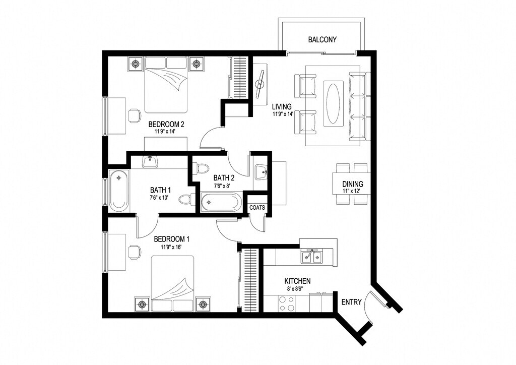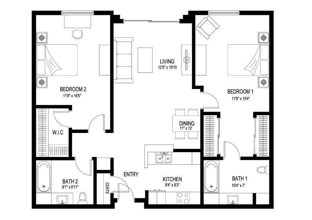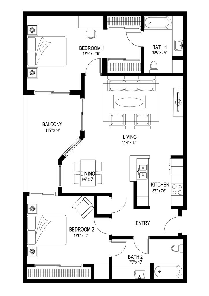 1 Bed, 1 Bath, 800 sq ftModel Gallery