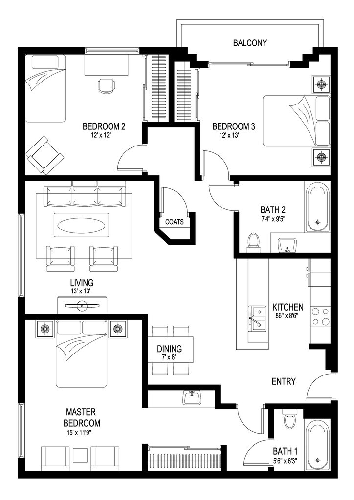 - Studio–3 Bedrooms