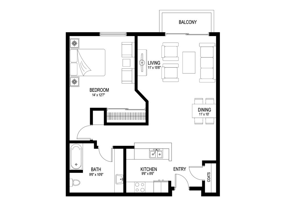 Studio, 1 Bath, 550 sq ftAvailable February 9, 2026Model Gallery