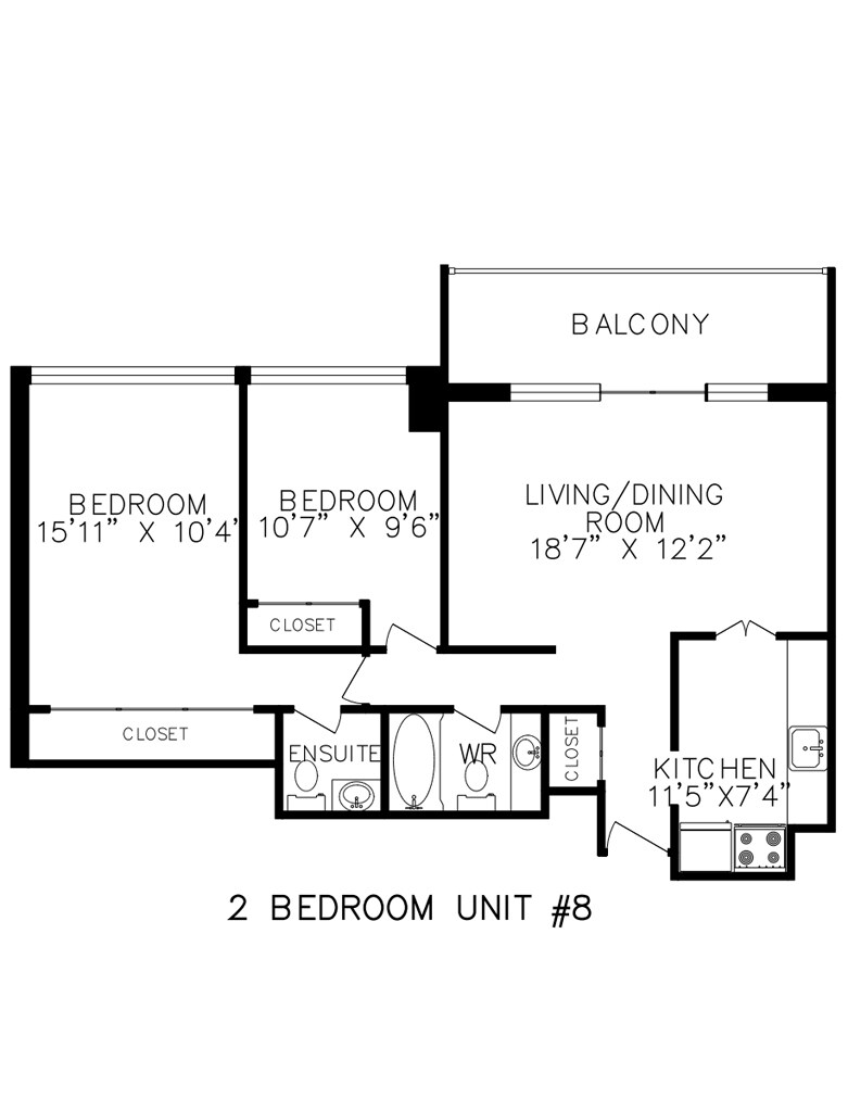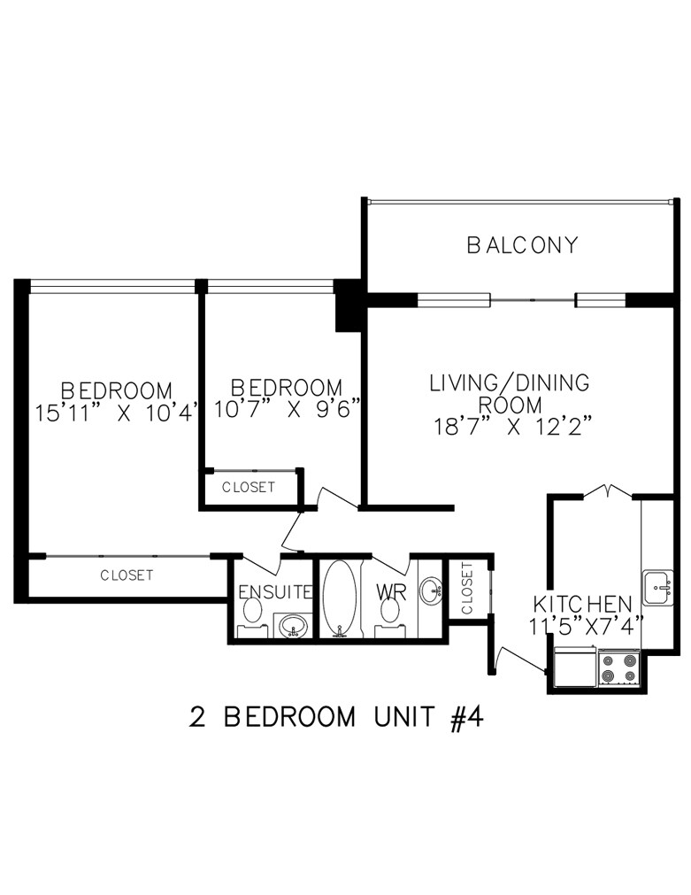 1 Bedroom - Floorplan 4 2 Bedrooms