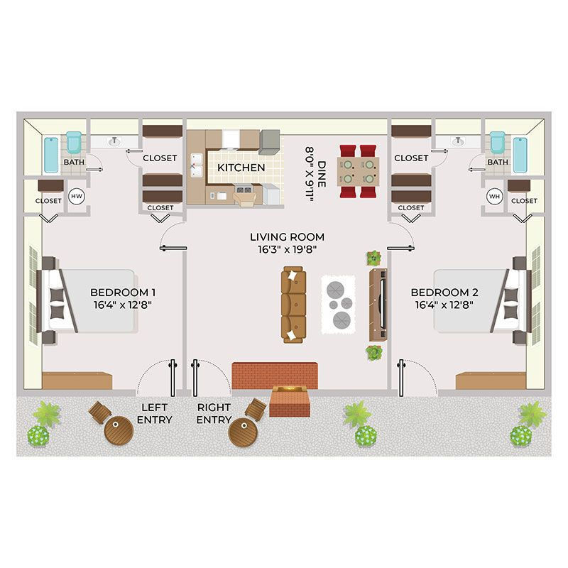 2 Beds, 2 Baths, 1200 sq ftLargest 2 BedroomThis is the largest 2 Bedroom at this PropertyModel Gallery