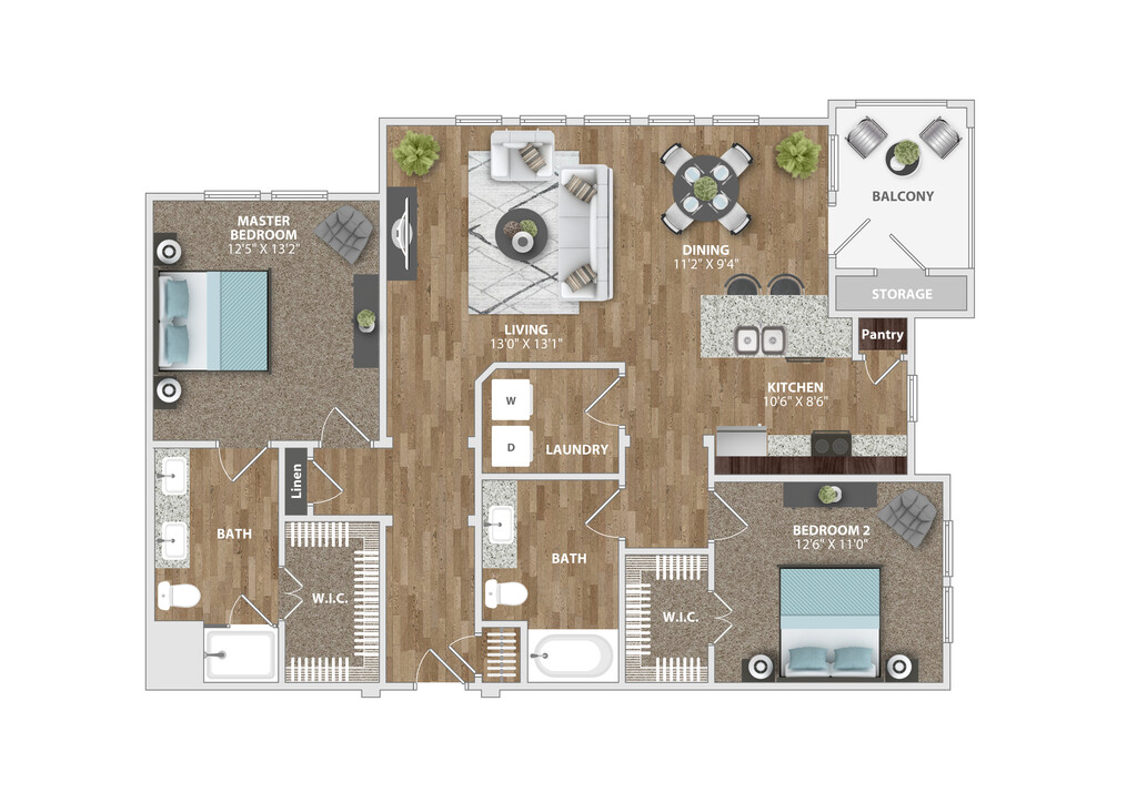 1 Bed, 1 Bath, 833 sq ftAvailable NowLargest 1 BedroomThis is the largest 1 Bedroom at this PropertyModel Gallery