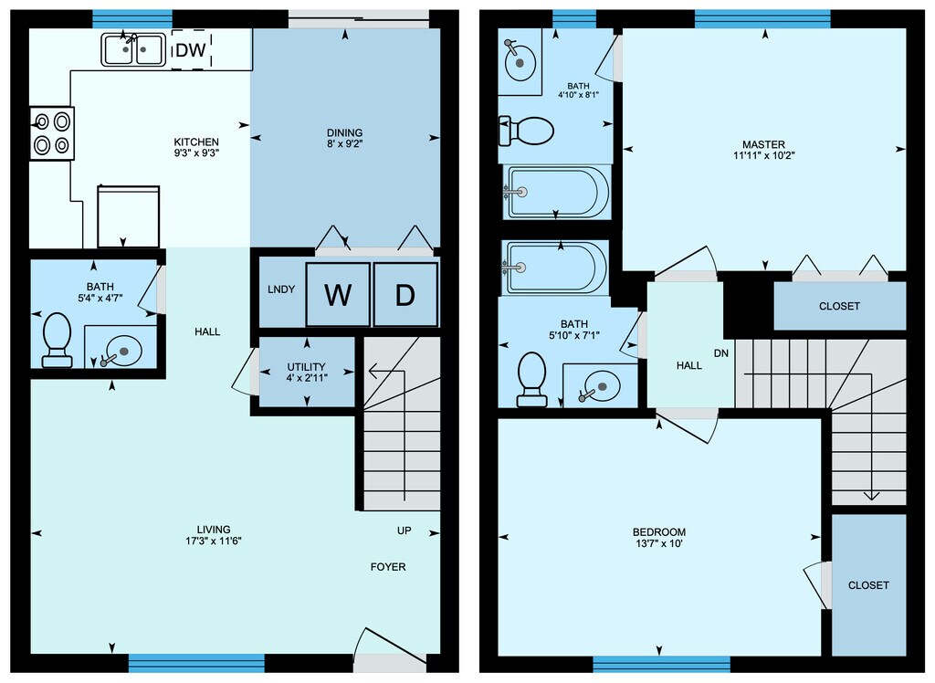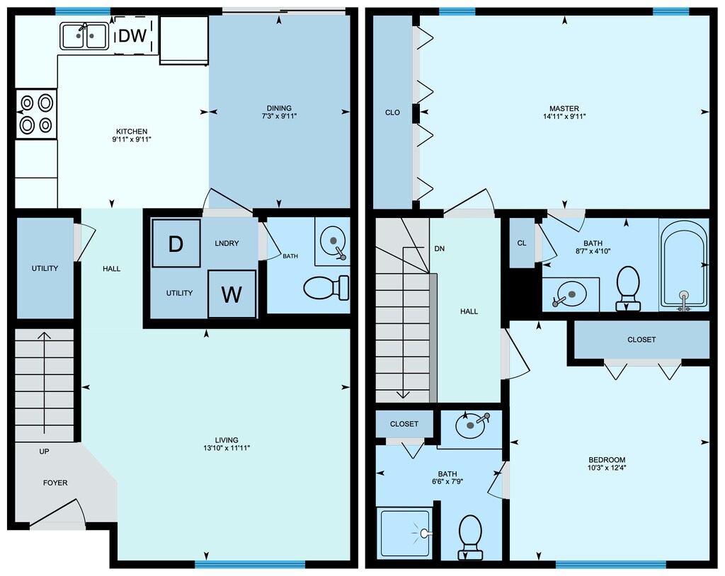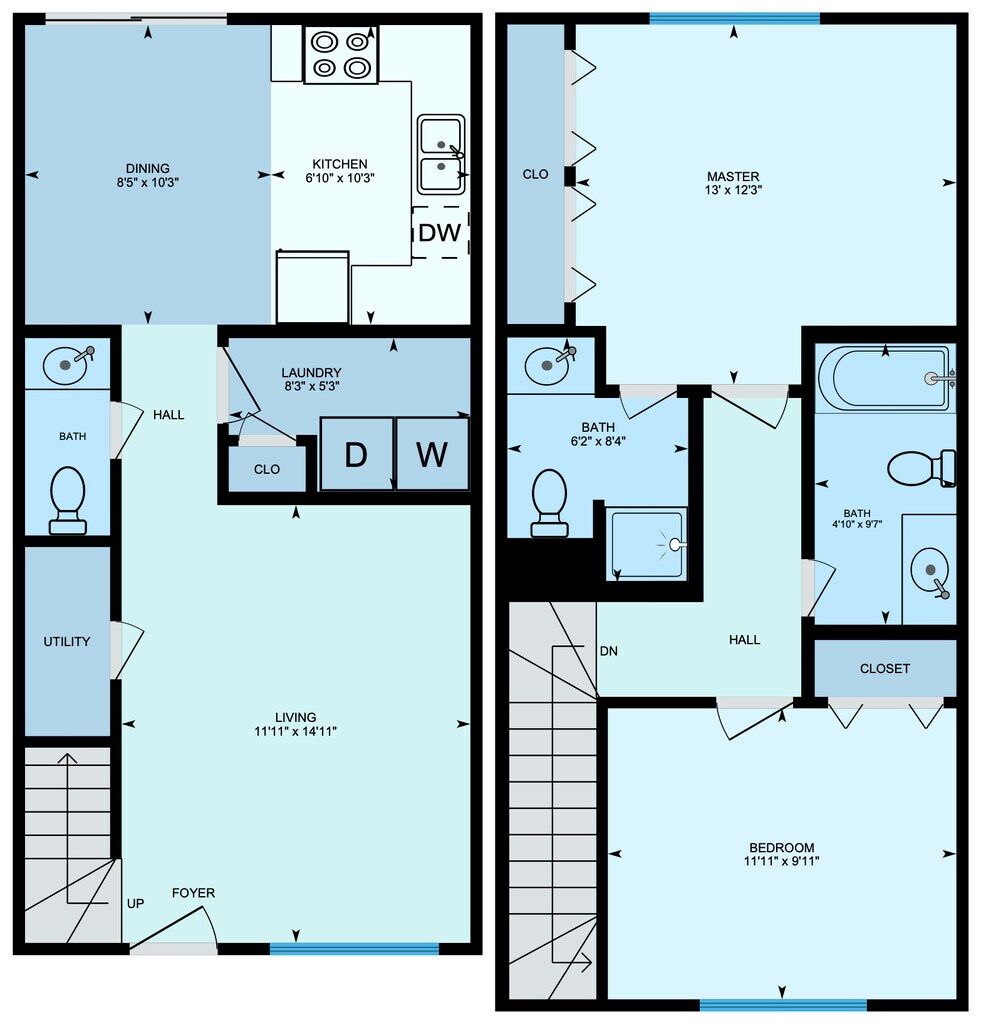 Apartment Model: Duplex 2A$1,2502 Bedroom, 2 Bath, 900 sq ftAvailable Now![]()