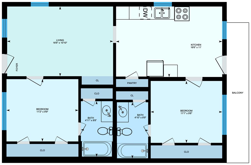 1105 Chestnut - Floorplan 11 2 Bedrooms