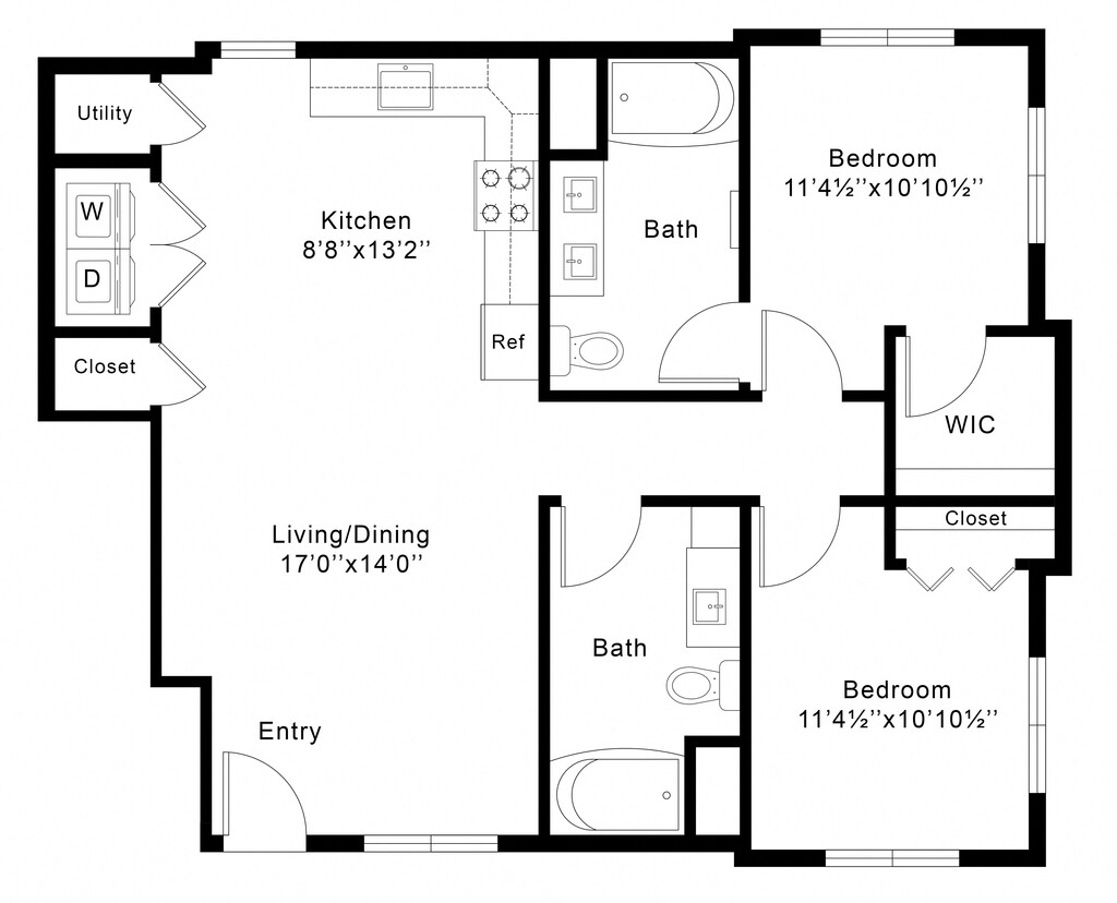Apartment Model: 2 Bedroom - Lower Level ADA$9752 Bedroom, 2 Bath, 1100 sq ftUnavailable2 Bedroom - Lower Level ADA - Floorplan 1 4 Bedrooms