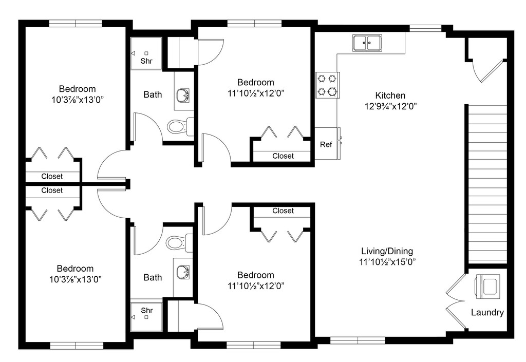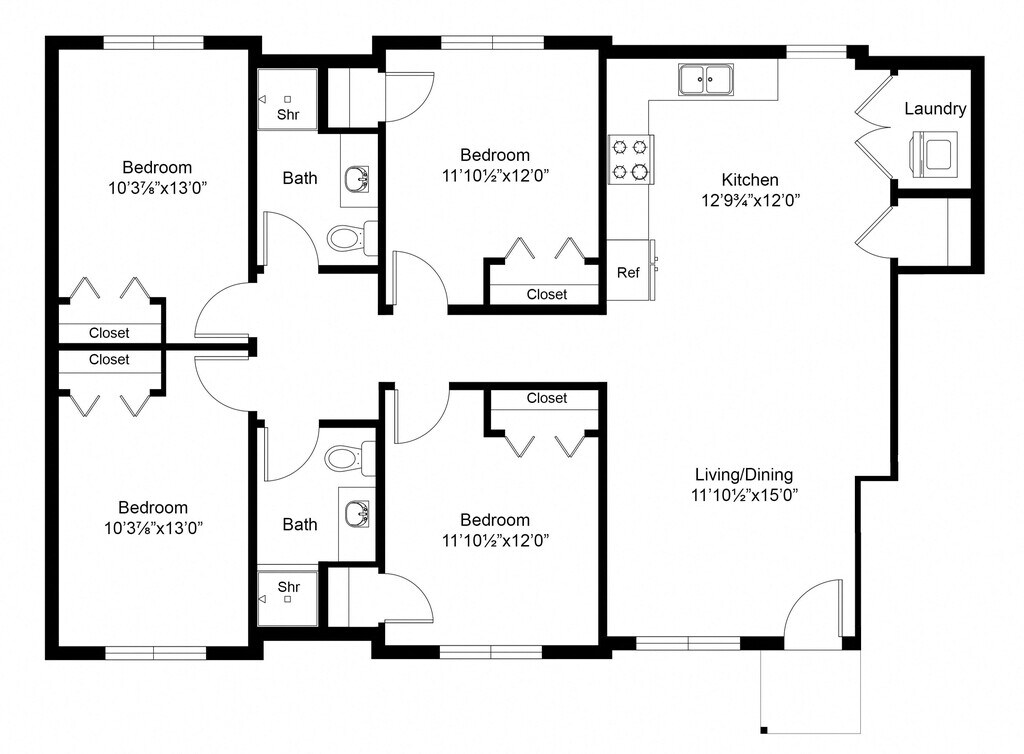 Apartment Model: 4 Bedroom - Upper LevelFrom $9754 Bedroom, 2 Bath, 1155-1438 sq ftAvailable Now4 Bedroom - Upper Level - Floorplan 1 Apartment Unit: B14Apartment Model: 4 Bedroom - Upper Level$9754 Bedroom, 2 Bath, 1155 sq ftAvailable NowApartment Unit: B17Apartment Model: 4 Bedroom - Upper Level$1,1004 Bedroom, 2 Bath, 1438 sq ftAvailable NowApartment Unit: C12Apartment Model: 4 Bedroom - Upper Level$1,1004 Bedroom, 2 Bath, 1438 sq ftAvailable Now4 Bedroom - Lower Level