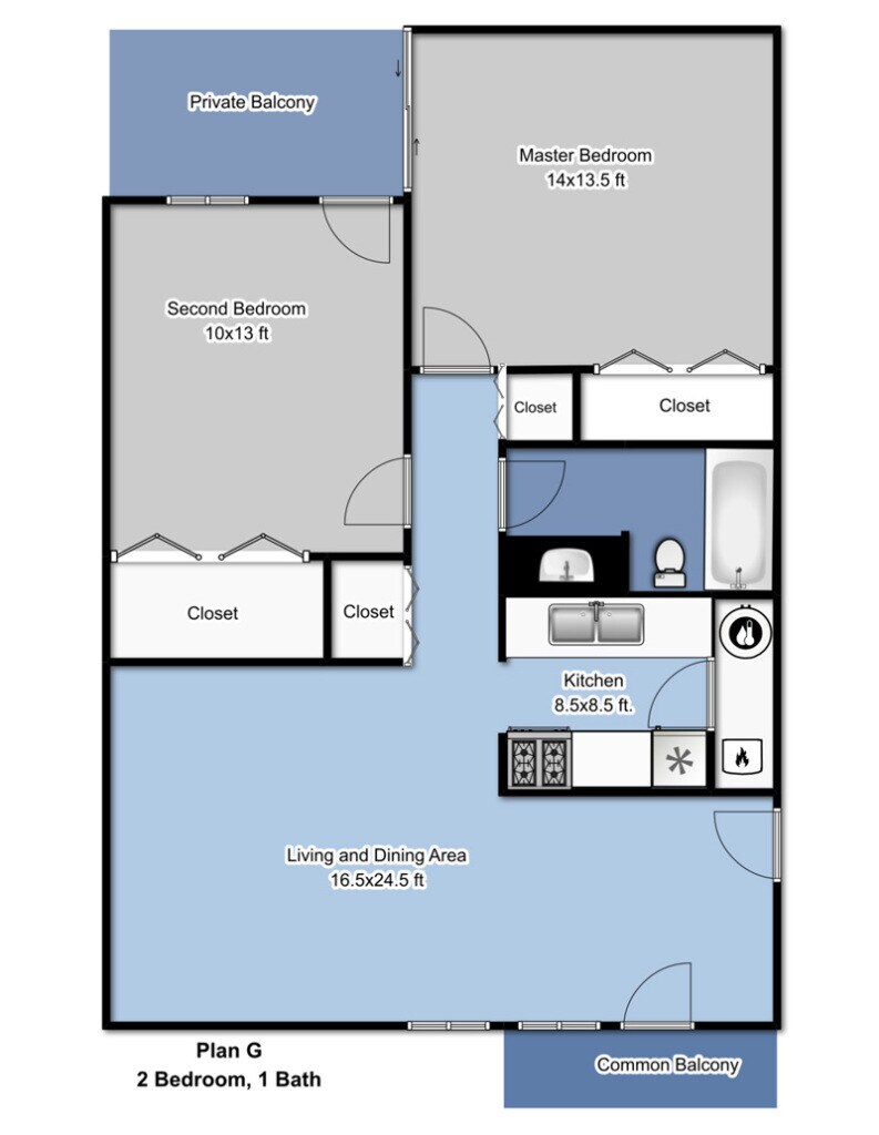 Apartment Model: Plan G$1,1252 Bedroom, 1 Bath, 900 sq ftAvailable Now![]()