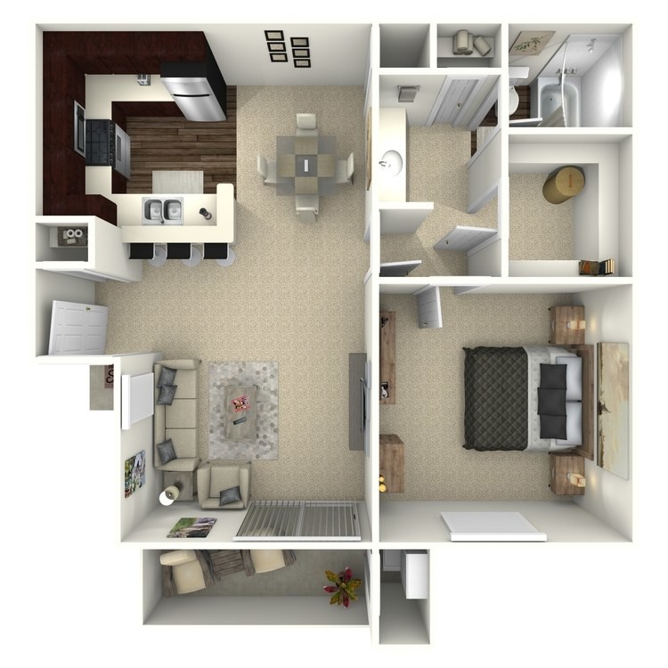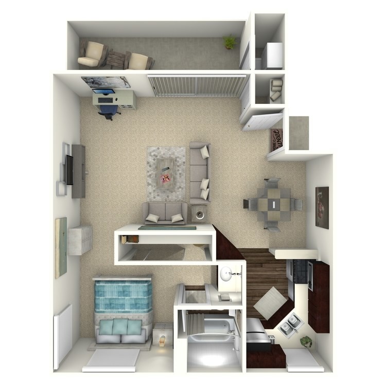 1 Bed, 1 Bath, 613 sq ftModel Gallery